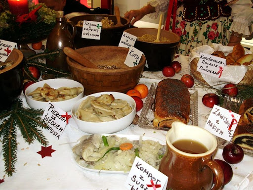 The supper begins with the breaking of the wafer called opłatek and expressing christmas greetings.